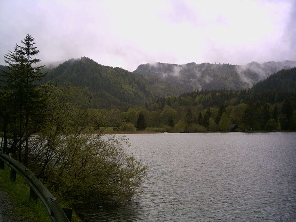 Vysadili nás u jezera, prý je to ještě kilometr do Mariazell, vzhledem k