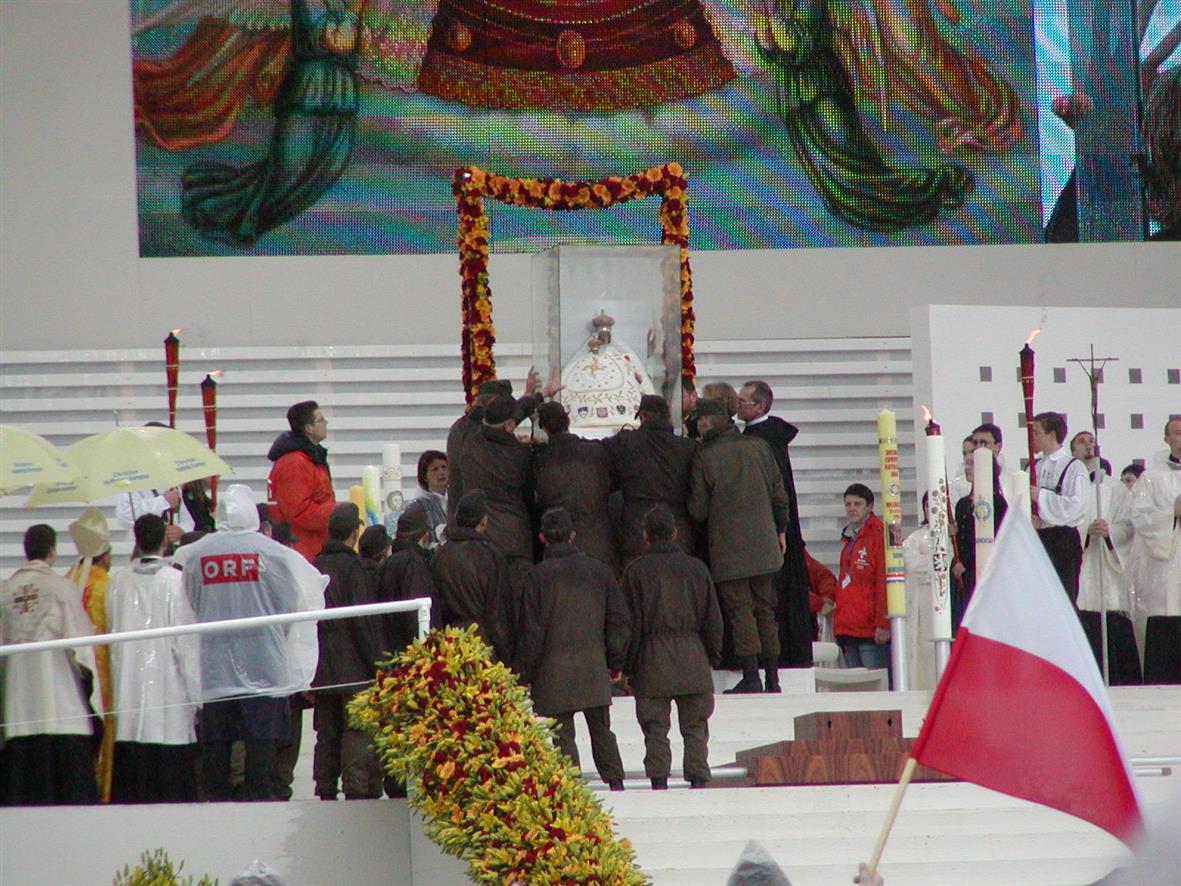 Z baziliky vyšel průvod s celskou Madonou a blížil se k tribuně. Netrvalo dlouho a začala slavnostní mše svatá přenášená rádiem i televizí, tuto jste také mohli sledovat. Snad stojí za to zopakovat si sedm hlavních bodů ( proseb), které jako program pro nás, středoevropské katolíky, shrnuli naši biskupové.