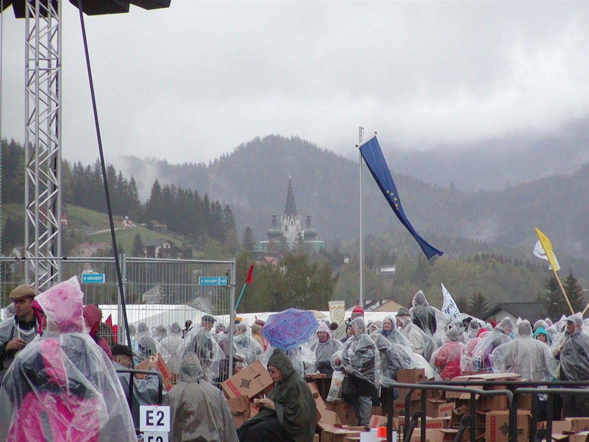 A co se týká těch pláštěnek?? I dnes po deseti letech, když tuto mou vzpomínku na pouť v Mariazell zapisuji, pořád ještě by mě zajímalo: „Proč nám vlastně ti Rakušané odmítali vydat pláštěnky, přestože viděli, že mokneme a přestože jich měli na kapotě ještě dost?? Co je k tomu vedlo ??? Dostali jste někdo, kdo jste tuto deštivou pouť zažili, nějaké rozumné vysvětlení ???“