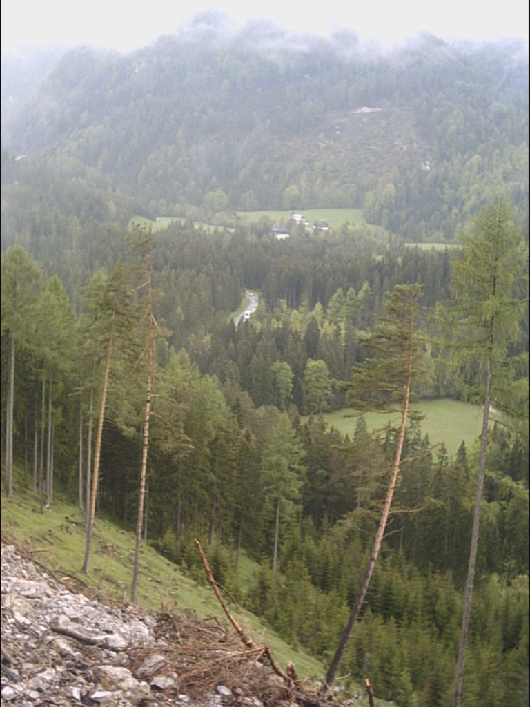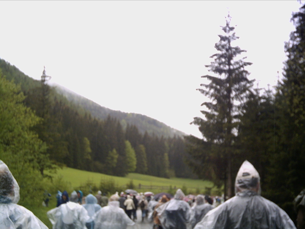 Když jsme kolem 6. Hodiny ráno dojeli do Mariazell, pršelo stále krásně. Vystoupili jsme z autobusu, poučeni, že musíme ještě kilometr pěšky a potom teprve dostaneme pláštěnky. Vyrazili jsme vyznačeným směrem doufaje, že déšť třeba časem ustane.